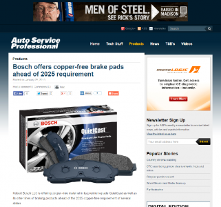ボッシュ、米2025年銅使用規制に先駆けたブレーキパッドを発売
